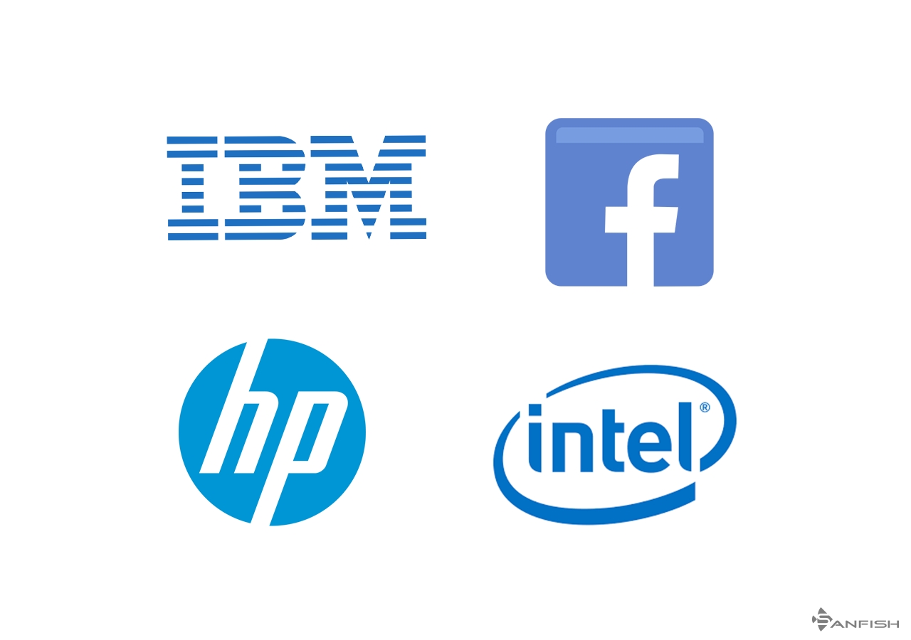 你一定注意到許多科技品牌的標志是藍色的,比如Facebook,IBM,Intel和HP,他們使用這種被動色來象征自由,信任,智慧和進步。