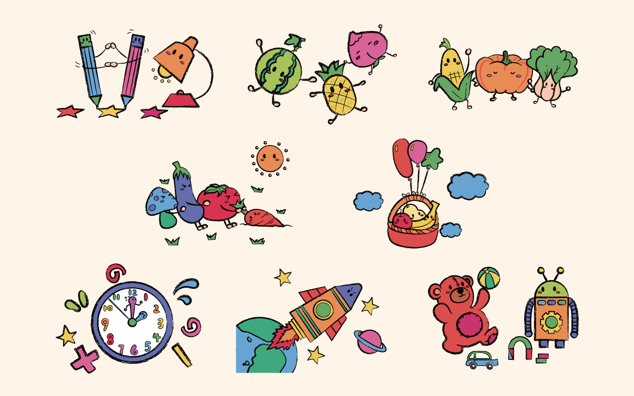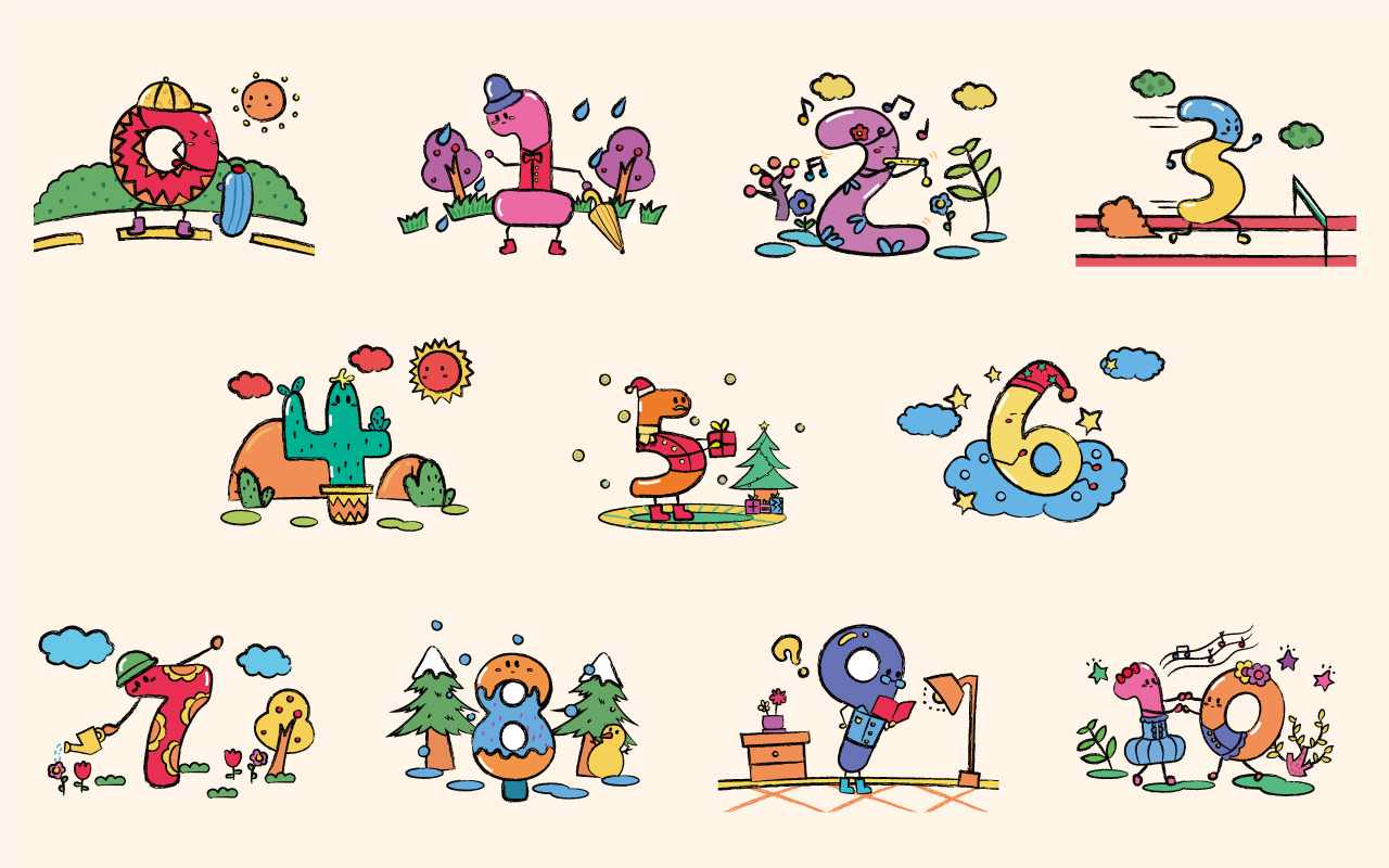 產品通過將枯燥的數字、靜物、動物擬人化的畫法